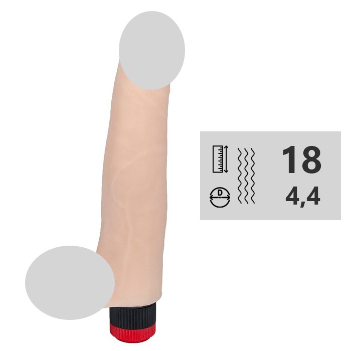 Изделие имитирует настоящий половой член мужчины. Вибратор может плавно регулироваться в своем основании при помощи специального колёсика.