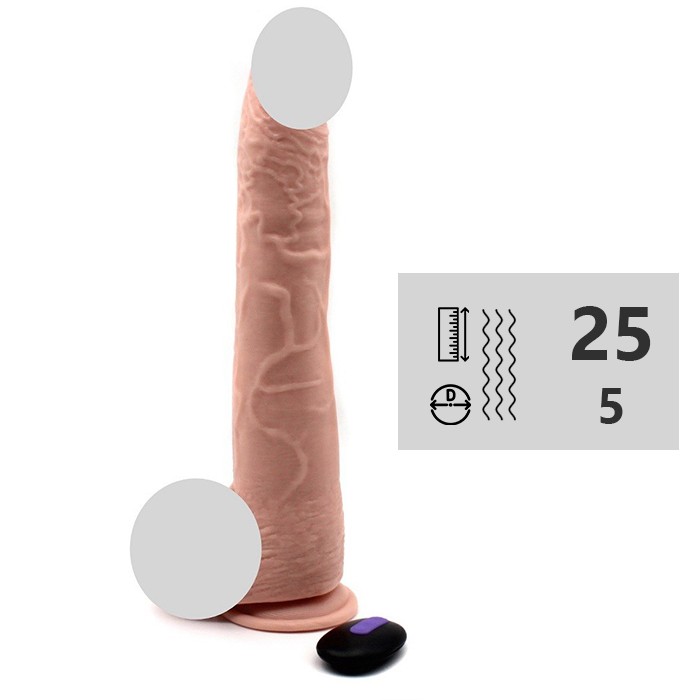 Очень большой вибромассажёр на присоске. Имеет 20 режимов вибрации. Головка вибратора ярко-выражена, глянцево розового оттенка, как на настоящем члене, а плотный ствол имеет рельеф из имитации венок. Управляется как с кнопки на основании игрушки, так и через пульт. Благодаря этой игрушке Вы сможете получить незабываемые впечатления.