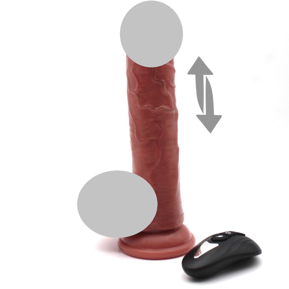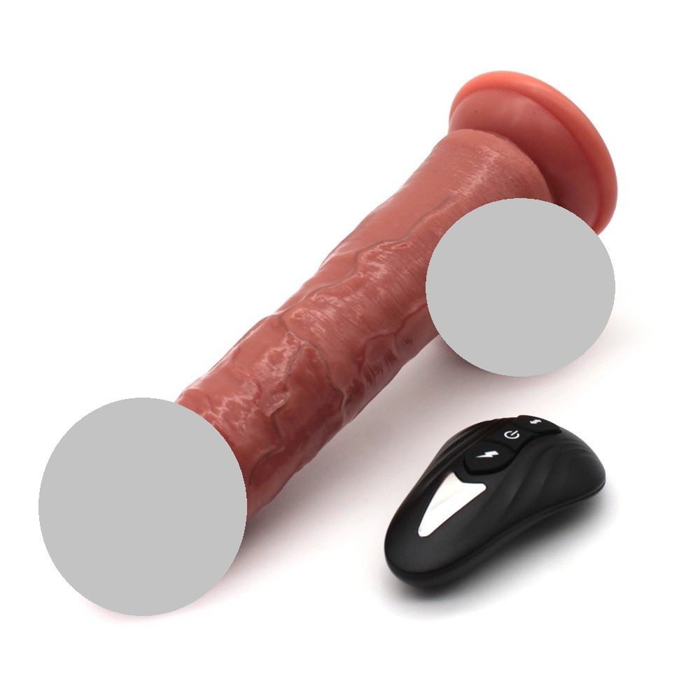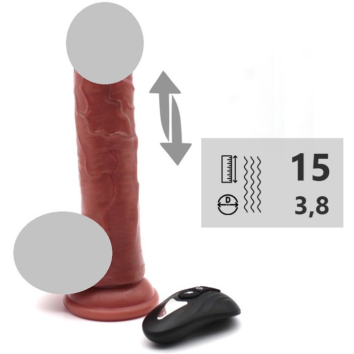 Реалистичный вибромассажёр на присоске. Имеет не только 10 режимов вибрации, но и 3 режима возвратно-поступательных движений. Головка вибратора ярко-выражена в цвет ствола, а ствол имеет рельеф из имитации венок. Материал мягкий, приятный на ощупь. Не гнется. Кнопка включения (зажать 3 сек) под присоской. Управляется при помощи дистанционного пульта управления (до 3 метров).