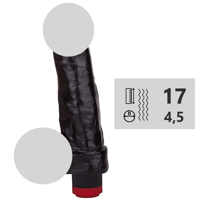 Толстый фаллоимитатор с вибрацией чёрный с мошонкой на основании и многоскоростной вибрацией.