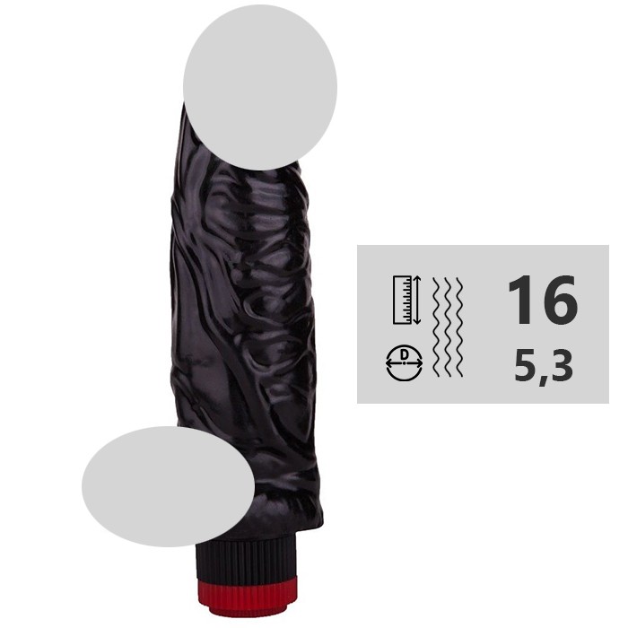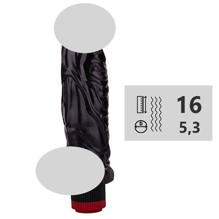 Вибромассажёр-реалистик внушительного размера в чёрном цвете. Выполнен очень натурально, толстый ствол, объемная головка и ярко выраженные венки.