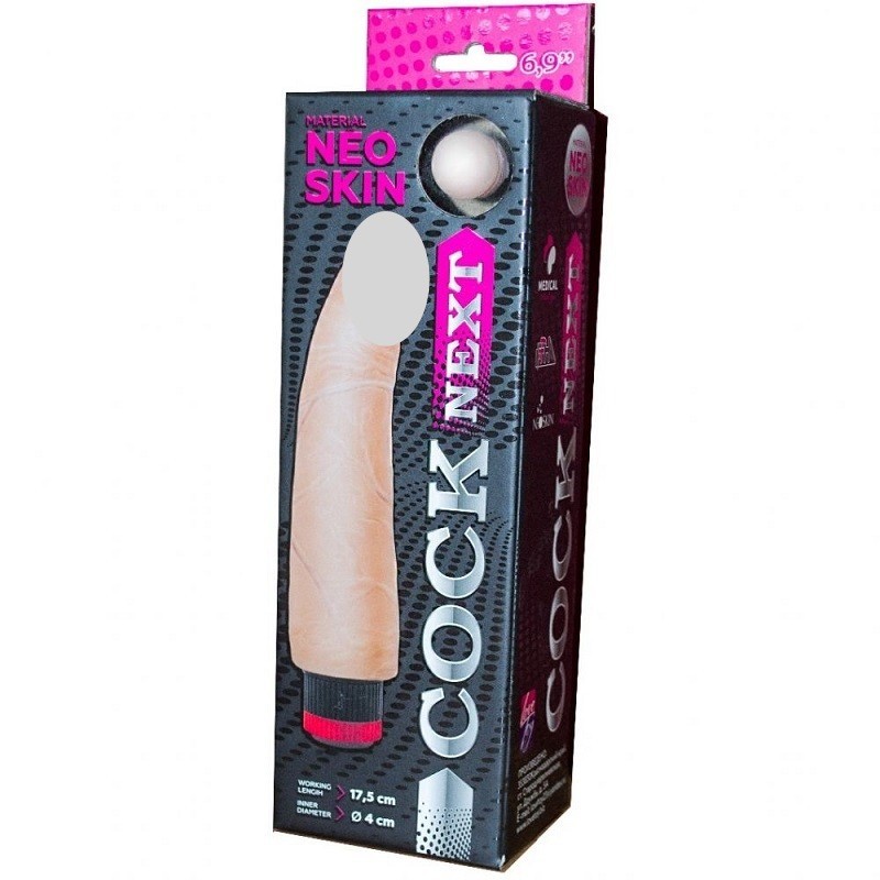 Вибромассажёр телесного цвета без мошонки. Имеет форму члена с слегка зауженной головкой розового оттенка. Необычайно приятный; выполнен из материала «неоскин», передающий эффект мягкой реалистичной текстуры кожи.