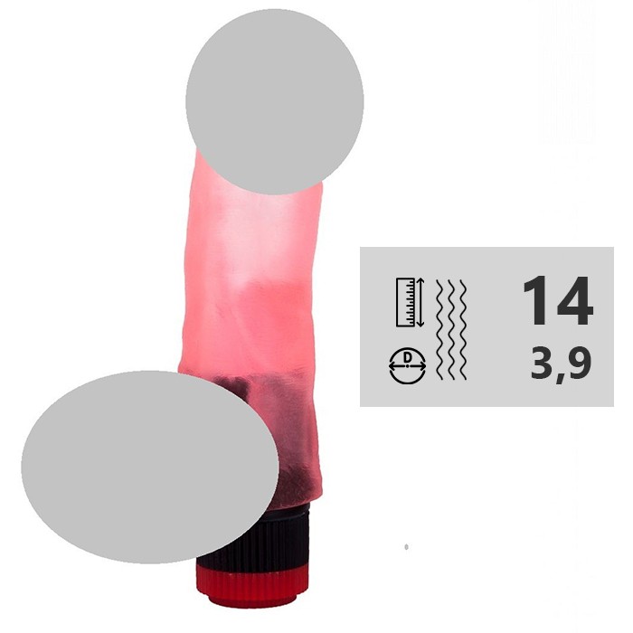 Вибромассажёр в розовом цвете, соответствует средним размерам мужского достоинства.