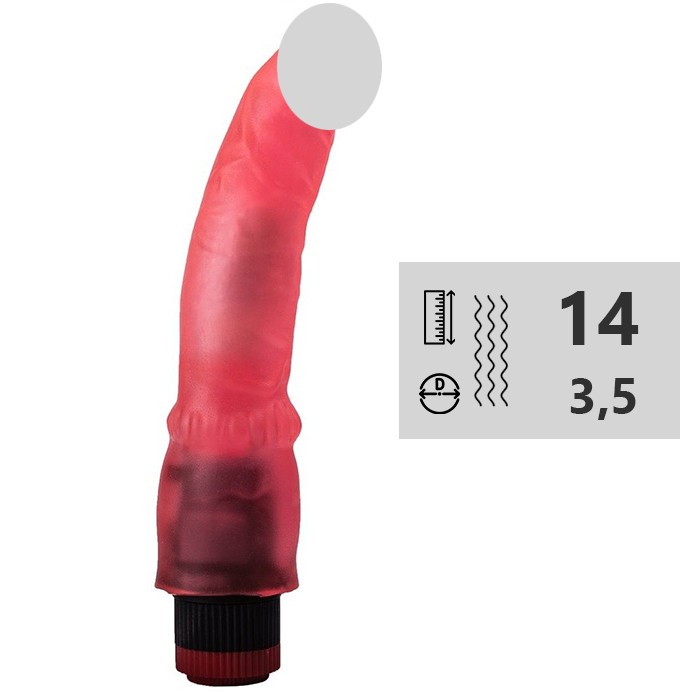 Вибромассажёр в розовом цвете, соответствует средним размерам мужского достоинства. Эластично сгибается.