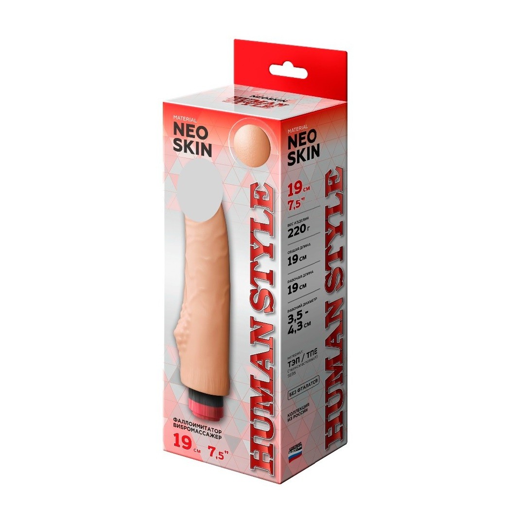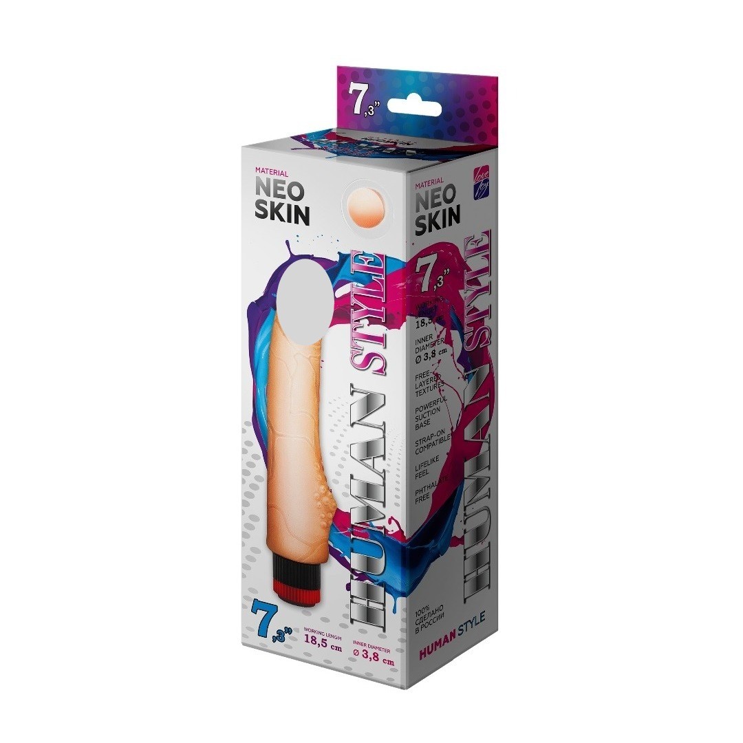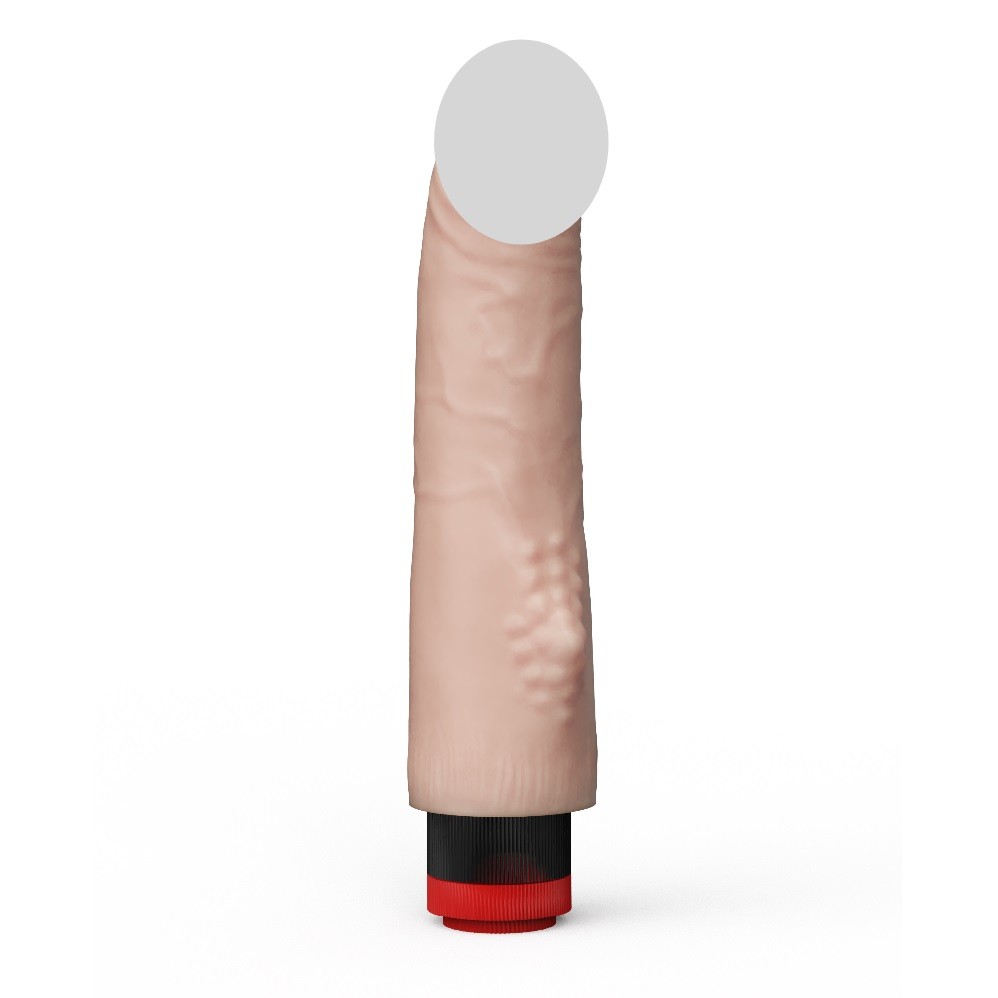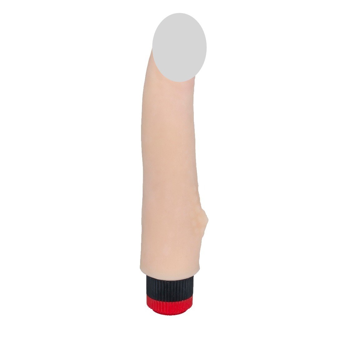 Реалистичный вибромассажер телесного цвета без мошонки. Имеет форму члена с слегка зауженной головкой розового оттенка.