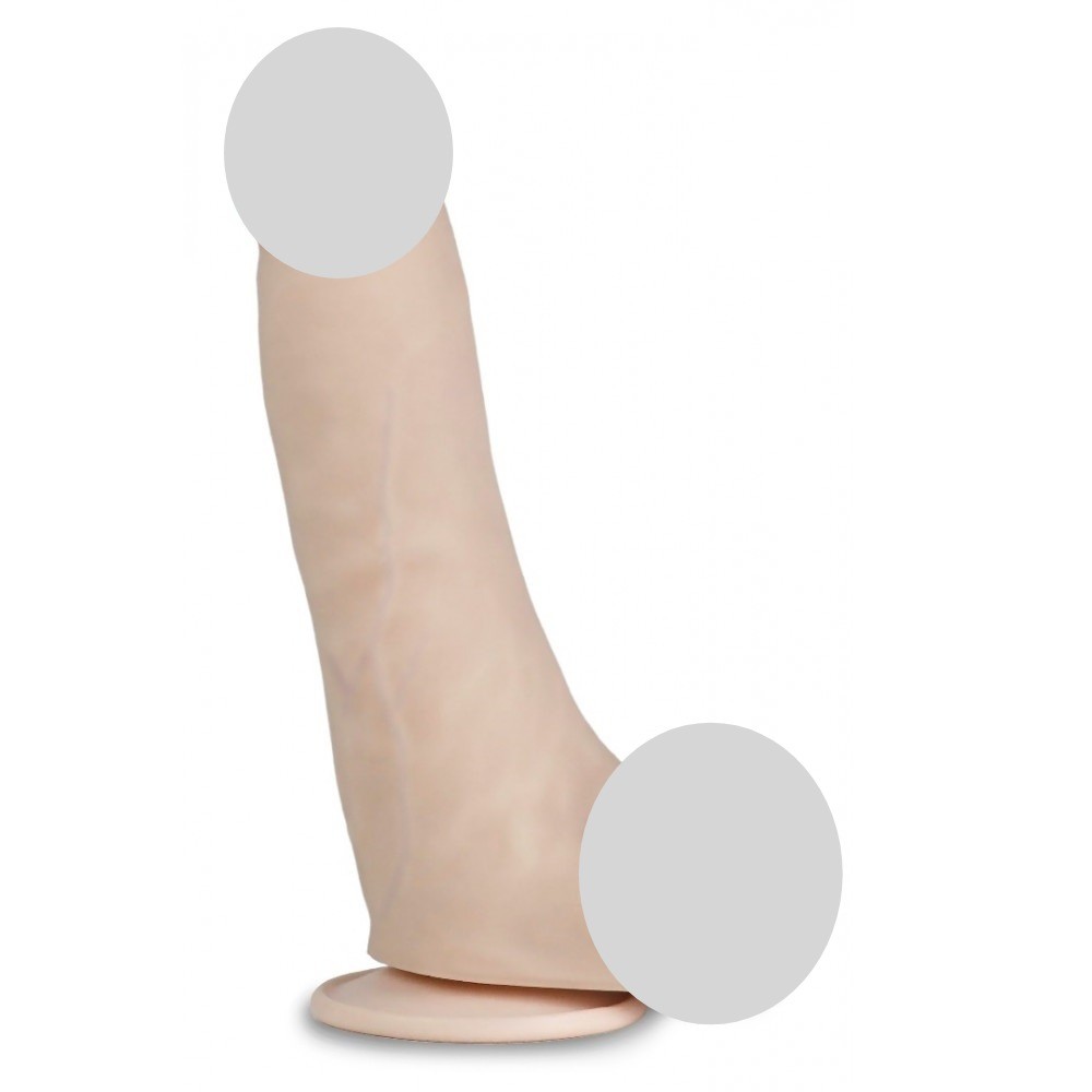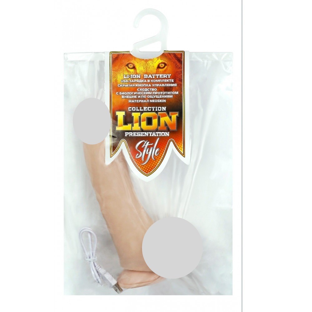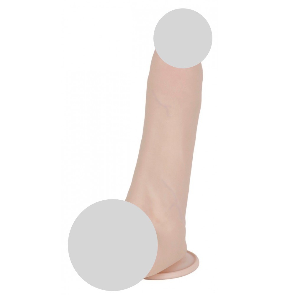 Крупный реалистичный вибратор с внушительной мошонкой. Головка розового оттенка.