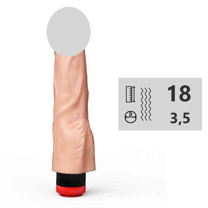Вибратор телесного цвета имеет форму полового члена с хорошо прорисованной зауженной головкой. Чтобы отрегулировать этот реалистичный интим-аксессуар, достаточно воспользоваться колесиком, расположенным в его основании. Имеет 1 режим вибрации.