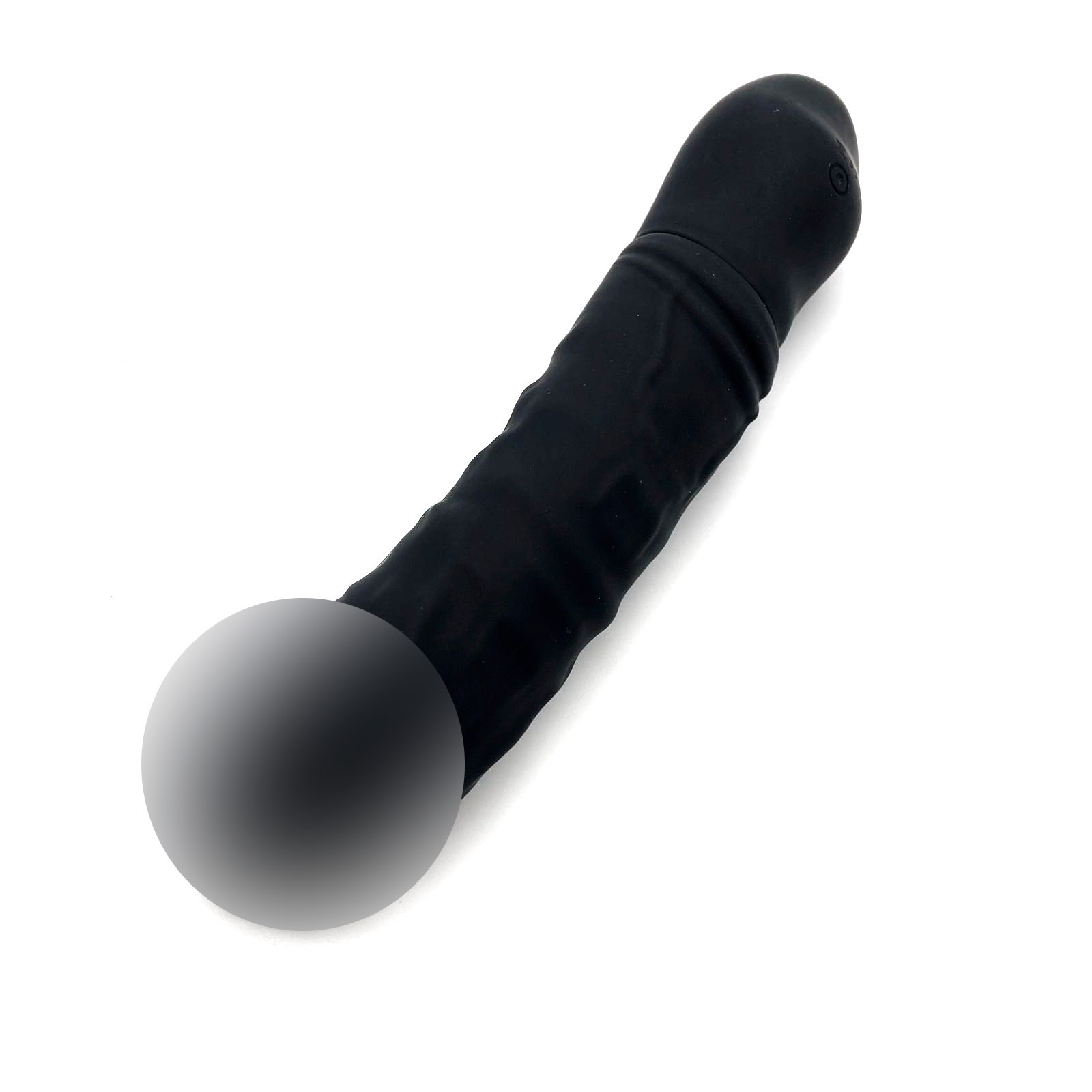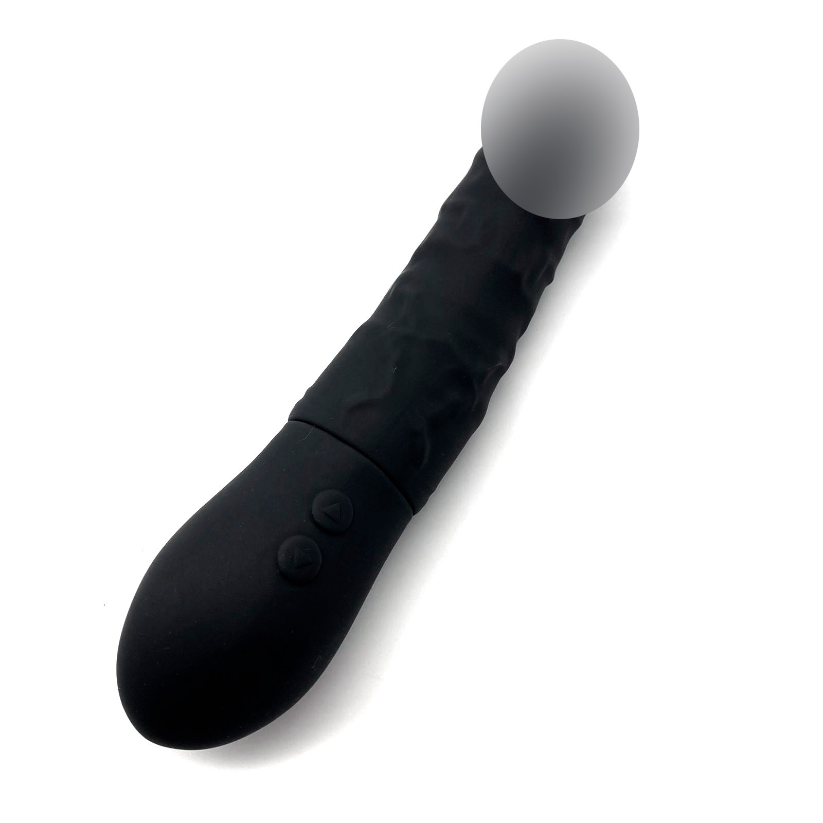 Чёрный вибратор King выполнен в виде мужского полового члена с детализированной проработкой венок, складок крайней плоти и головки.