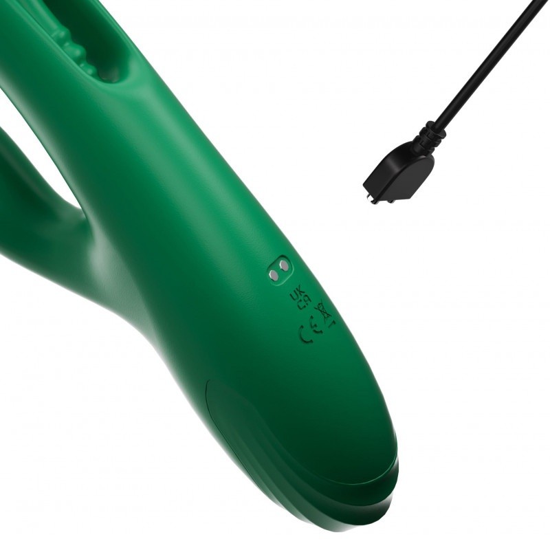 Вибромассажер изготовлен из премиального силикона, который является гипоаллергенным. Для комфортности введения и получения максимально приятных ощущений рекомендуем использовать лубрикант на водной основе. Управление осуществляется с помощью трех встроенных в основание кнопок. Чтобы включить или выключить игрушку, необходимо нажать и в течении трех секунд удерживать кнопку, которая расположена по середине. Верхняя кнопка отвечает за включение язычка в вагинальной части, нижняя за вибрацию в клиторальной частях, единоразовым нажатием на кнопку включения можно управлять стимуляцией в вагинальной части. Вибромассажер заряжается через магнитный USB (ЮЭсБи) и может быть подключен практически в любом месте, просто подсоедините идущий в комплекте шнур к совместимому порту компьютера или USB (ЮЭсБи) - адаптера (приобретается отдельно), а противоположный конец к разъему у основания. Полная зарядка занимает 150 минут, а беспрерывная работа на самых мощных режимах составляет 60 минут.