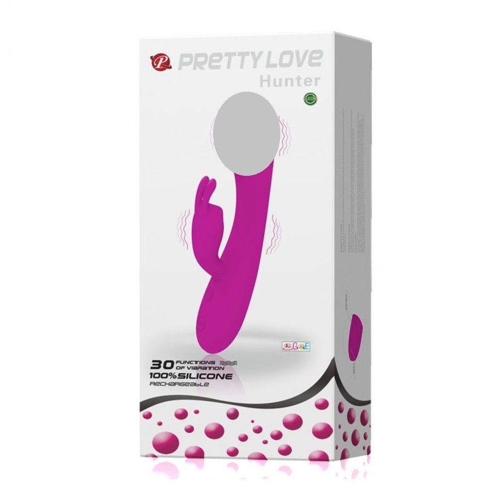 Лиловый вибратор Hunter с клиторальным зайчиком. Вибромассажер с клиторальным стимулятором, кончик которого сделан в виде кролика с ушками, на которые передаются вибрации. Головка в форме головки члена.