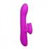 Этот вибромассажер из силикона уникален тем, что умеет не только вибрировать семью различными режимами, но и вращать маленькой головкой клиторального стимулятора, на кончике которого расположены мягкие лепестки-ребрышки.